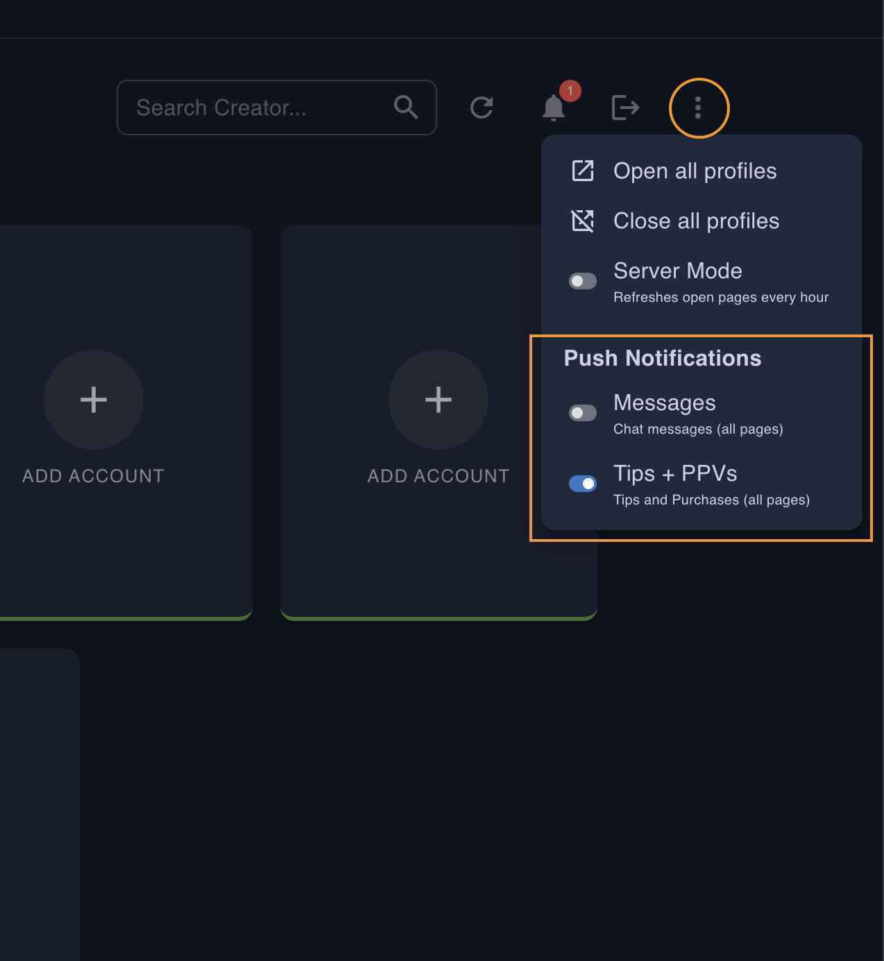 You can enable notifications either globally for all creators or individually per creator page, depending on your workflow.